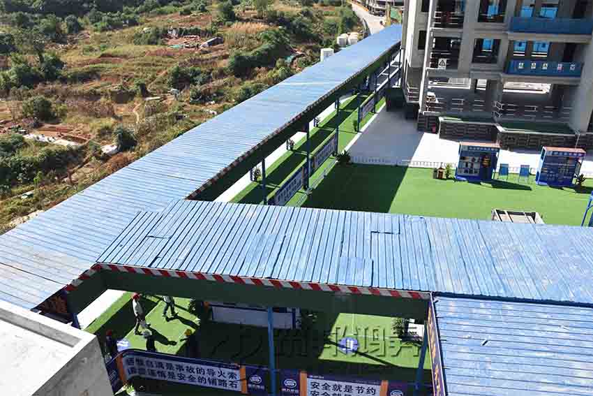 安全通道,施工現場實行人車分流,主要人員出入通道搭設了專用安全通道,安全通道兩側設置宣傳欄,提升施工作業人員的質量意識、安全意識。